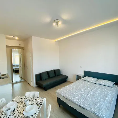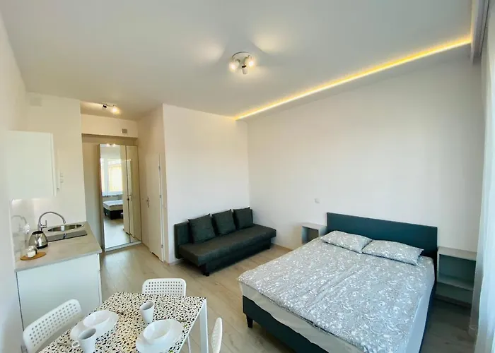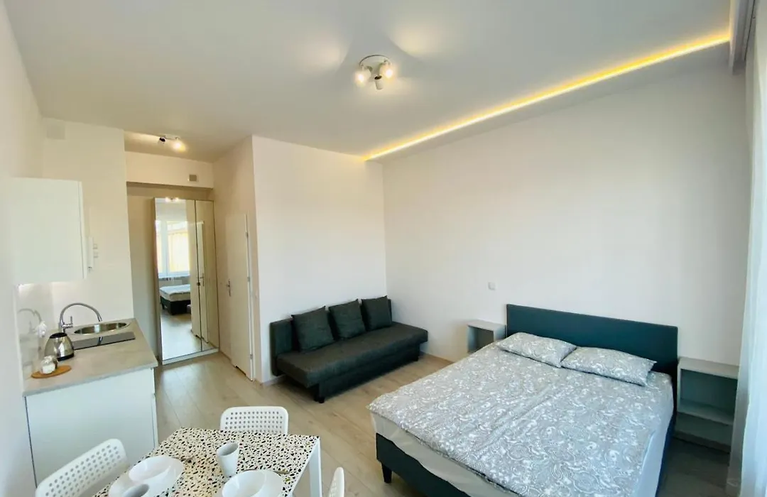 Equipped with climate control, the apartment exhibits a living room featuring a cupboard. A TV set make up the in-room media amenities. Apartamenty Smolna 11 offers guests the convenient feature of hairdryers, toiletries, and towels in the bathroom. A shower can also be found.
